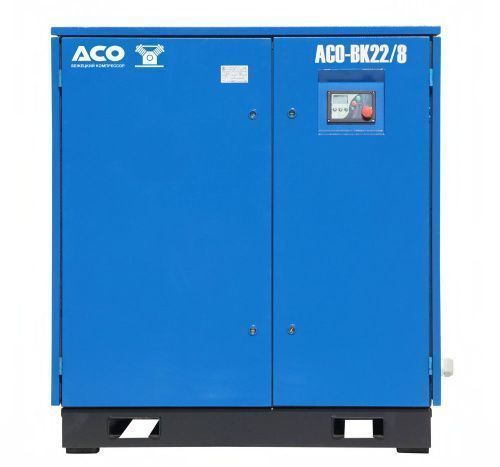 Винтовой компрессор серии АСО-ВК с ременным приводом производства Бежецкого завода АСО производительность по нагнетанию от 3,5 до 32 м3/мин, давление от 8 до 13 атм. Винтовой блок EVO9 (Rotorcomp), электродвигатель мощностью от 22 до 200 кВт. Рабочий диапазон температур от 10 до 45°С и имеет расход масла на унос не более 1 г/час. Уровень шума находится в пределах 72 - 76 дБа.