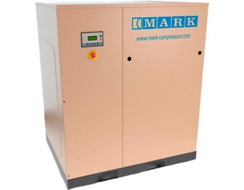 Винтовой компрессор Mark MSS-55A/7 производительностью 8640 л/мин, рабочим давлением в 7 атм и мощностью в 55 кВт. Работает от сети напряжением в 380 В. Тип привода – Ременной.
