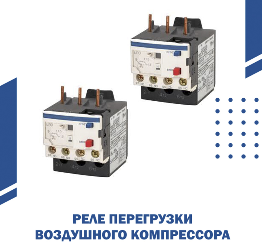 Реле перегрузки встречается практически на всех воздушных компрессорных установках, кроме самых маленьких (<2 кВт). Реле перегрузки часто называют «термоблок».